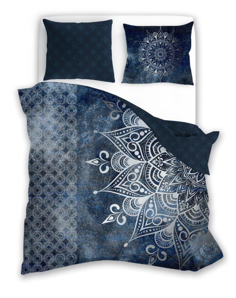 POŚCIEL KPL.140X200+70X90 PURE SATEEN MANDALA 001 GRANATOWY SATYNA BAW.