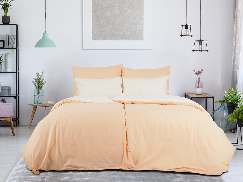 B.E.S. - Petrovice, s.r.o. Povlečení BAVLNA Double face hotelový uzávěr - Meruňková/Popelavá Rozměr: 140 x 200 + 70 x 90