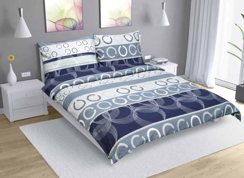 Povlečení krepové na dvoudeku - modrošedé kruhy - 1x 200x200, 2ks 70x90 cm