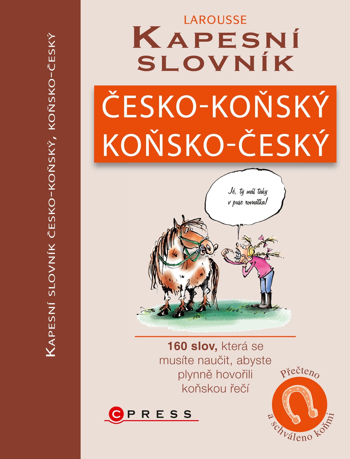První oboustranný slovník, který hovoří jak koňskou řečí, tak i slovy jejich jezdců a chovatelů. Nepostradatelný průvodce komunikací mezi člověkem a jeho koněm (či koněm a člověkem ) převádí chování a každodenní situace těchto dvou živočišných druhů do „lidské“ a „koňské řeči“ pomocí 160 klíčových slov seřazených od A do Z: např. cviky drezury, hřebelcování, jízdárna, pastva, podkova, ržání, udidlo, zvěrolékař…