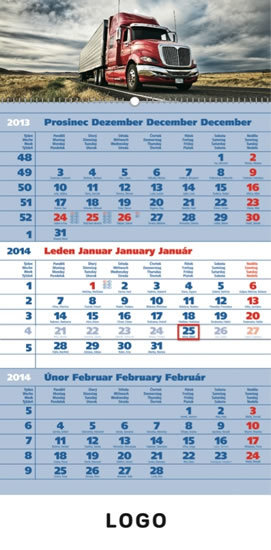Kalendář 2014 - Truck šedý 3měsíční s českými jmény - nástěnný s prodlouženými zády