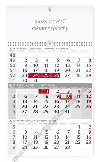 Kalendář 2014 - Tříměsíční šedý s reklamní plochou - nástěnný