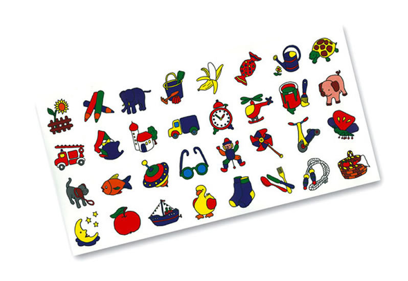 Nepostradatelná pomůcka do dětských kolektivů - identifikační značky pro nejmenší - obrázky místo jmenovek o rozměrech 4x4 cm, 32 kusů s jednoduchými barevnými veselými motivy. przeczytaj całość