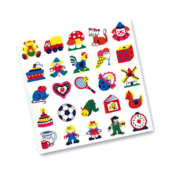 Niezastąpiona pomoc w grupach dziecięcych - identyfikatory dla najmłodszych - obrazki zamiast imienników o wymiarach 4x4 cm, samoprzylepne, 25 sztuk z prostymi, kolorowymi, wesołymi motywami. przeczytaj całość