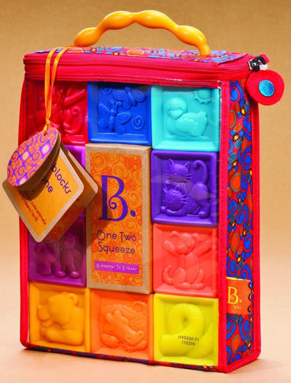 Vhodné pro děti od 6 měsíců do 3 let. 10 různobarevných kostek s písmeny a zvířaty. Měkký plastový materiál, po zmáčknutí pískají. Dítě si s kostkami může házet, stavět z nich, učit se písmenka a názvy zvířátek. V dárkové tašce na zip s držadlem do ruky pro snadné uklízení i přenášení. Taška...