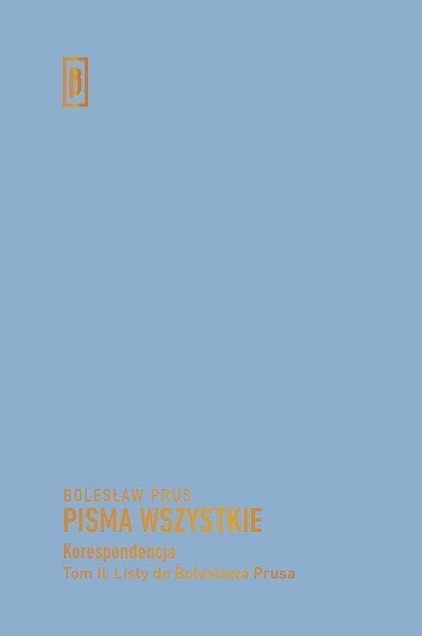 Edycja krytyczna Pism wszystkich Bolesława Prusa obejmuje publikację korespondencji Prusa zaplanowaną na dwa tomy. Tom pierwszy stanowi prezentację listów pisarza do rozmaitych osób i instytucji, w drugim zaś zamieszczone zostały listy, których adresatem był Prus.Spuścizna epistolograficzna...