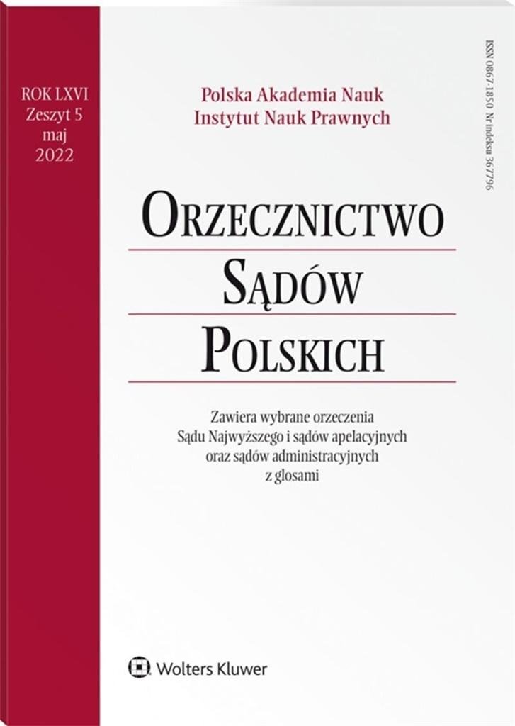 Najstarszy na rynku comiesięczny przegląd orzecznictwa sądowego wraz z glosami, wydawany we współpracy z Instytutem Nauk Prawnych Polskiej Akademii Nauk. Orzecznictwo Sądów Polskich stanowi nieocenione źródło informacji oraz pomoc w rozwiązaniu problemów, jakie napotykają Państwo w swojej...