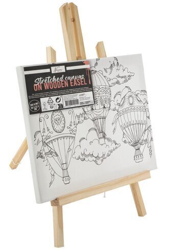 Balení obsahuje: plátno 30 x 22,5 cm s předtištěným motivem, dřevěný stojan