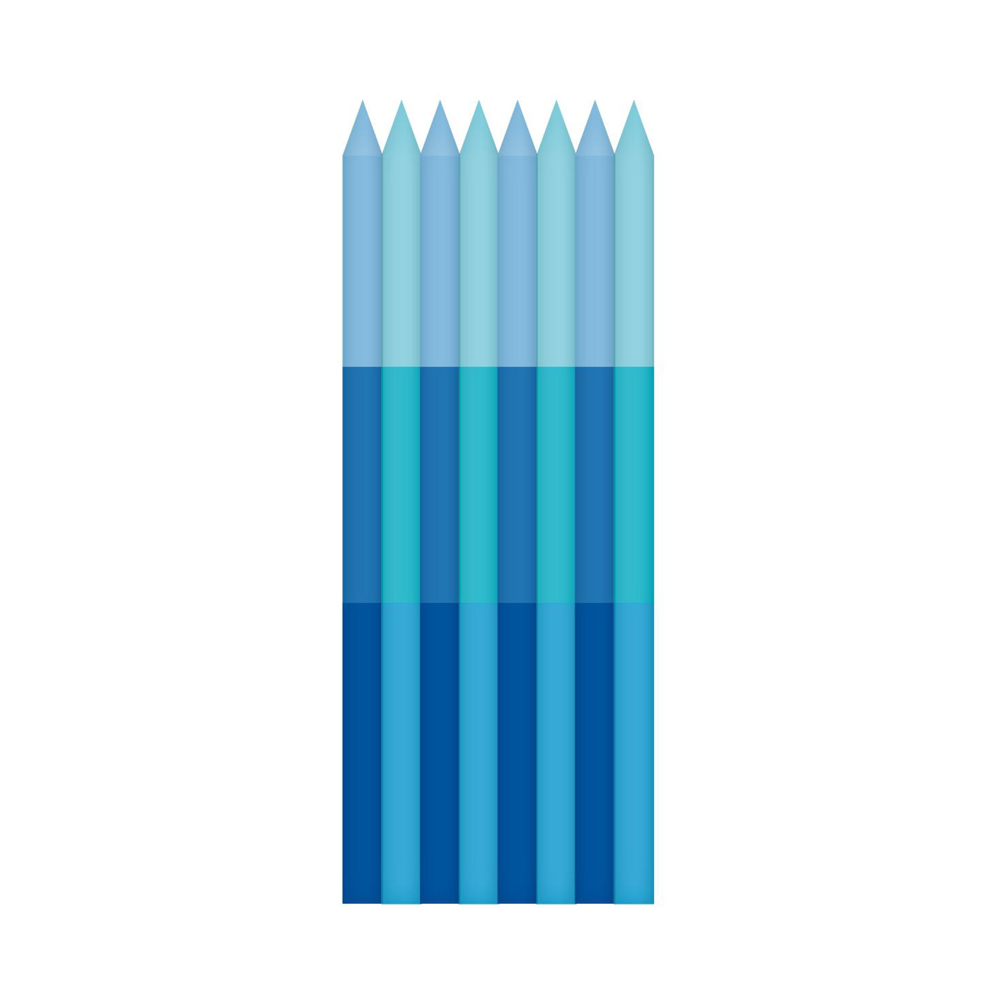 Svíčky narozeninové, pruhy modré, 10 cm, 24 ks