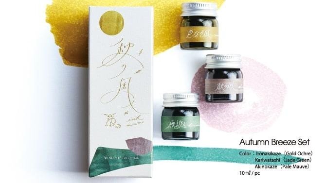 • sada 3 inkoustů • obsah každé lahvičky 10 ml • každá barva inkoustu je pojmenována po tradičním japonském větru • lze je použít se skleněnými pery, plnicími pery a namáčecími pery • vodou rozpustný inkoust • obsahuje barvy: Colorless Wind (Gold Ochre), Wild Geese Crossing (Jade Green), Autumn... przeczytaj całość