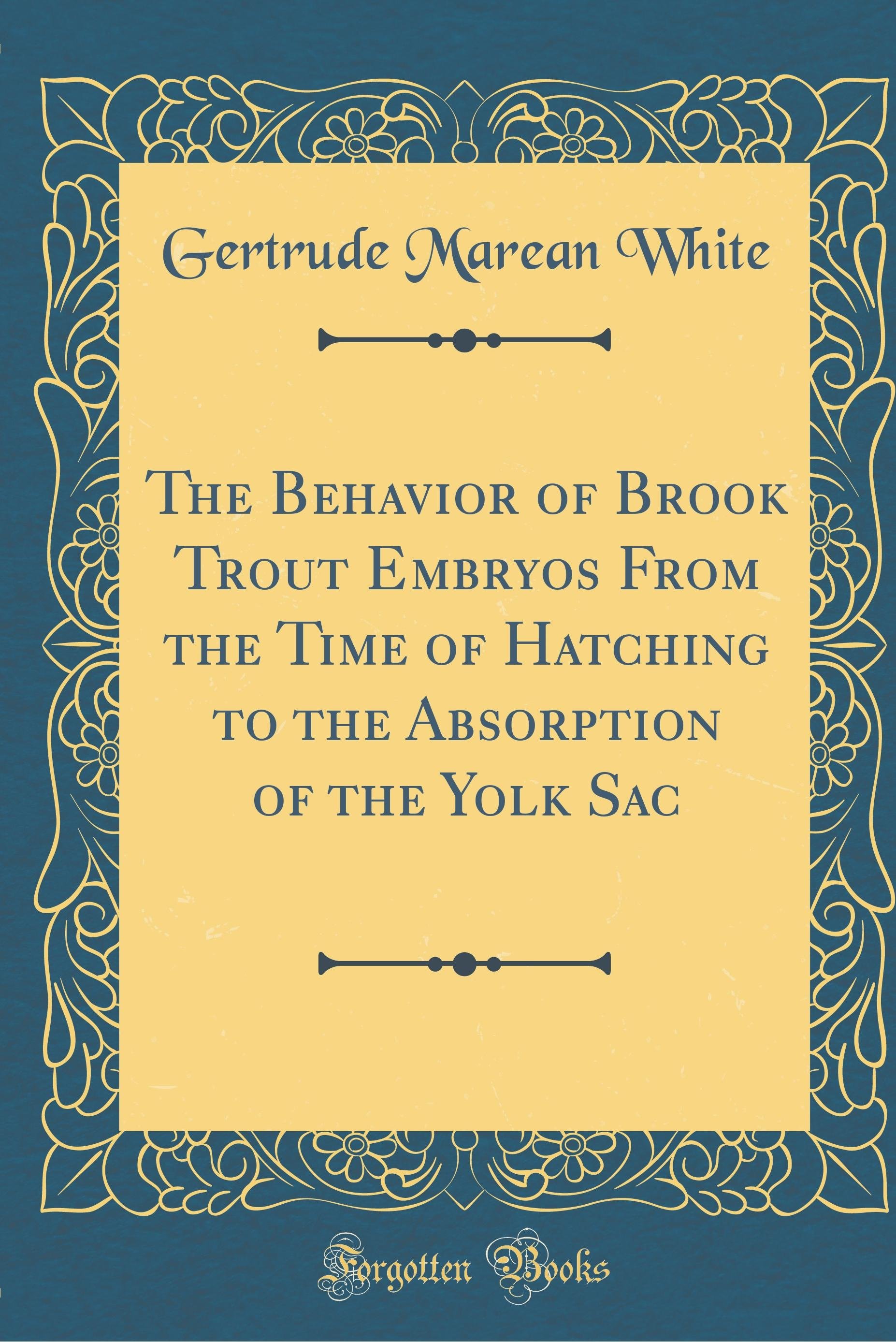 The Behavior of Brook Trout Embryos from the Time of Hatching to the Absorption of the Yolk Sac (Classic Reprint) (angielski)