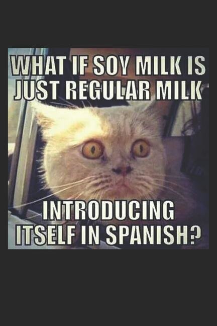 What If Soy Milk Is Just Regular Milk Introducing Itself in Spanish: Funny Cat Meme Book Caturday Gift. Perfect for School, Writ (angielski)
