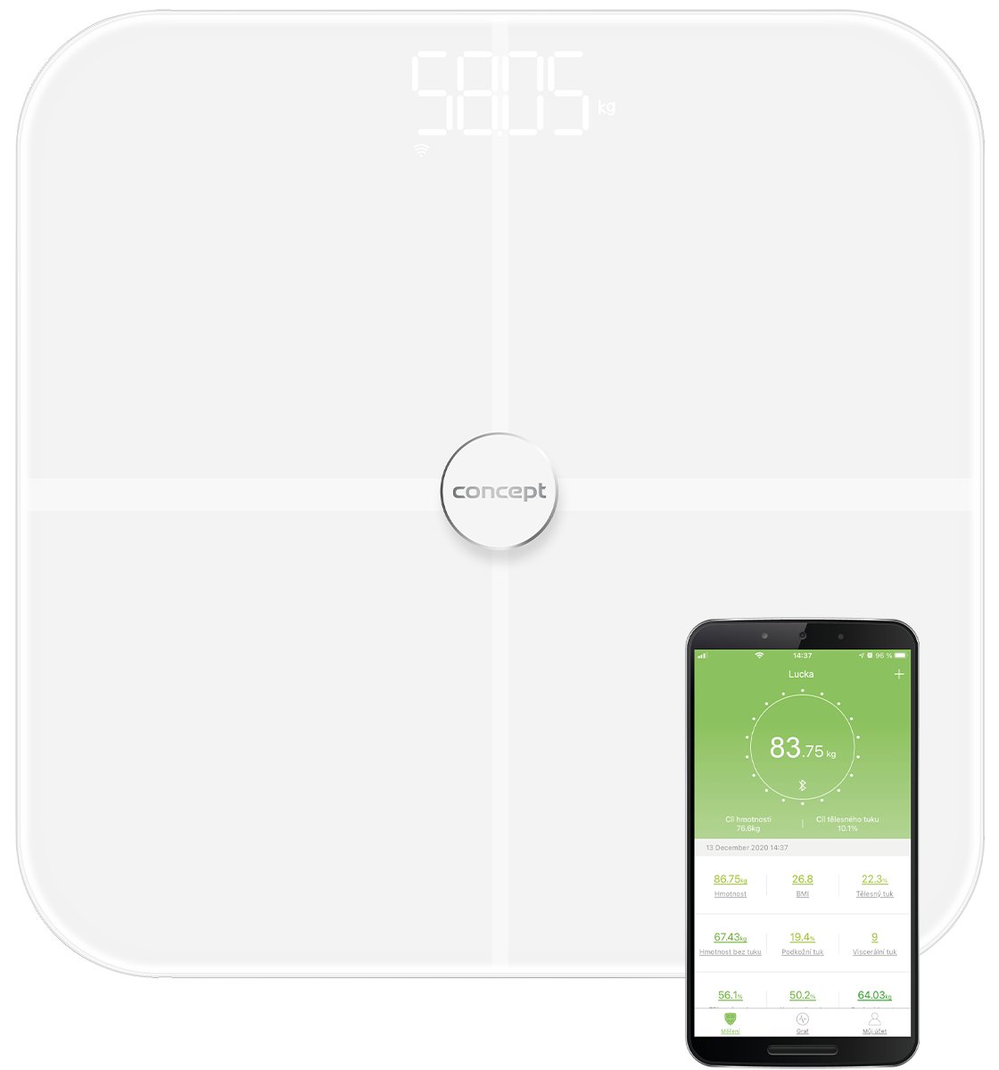 Osobní váha diagnostická 180 kg Concept VO4010 Komplexní analýza těla Pokročilá technologie měření Mobilní aplikace...