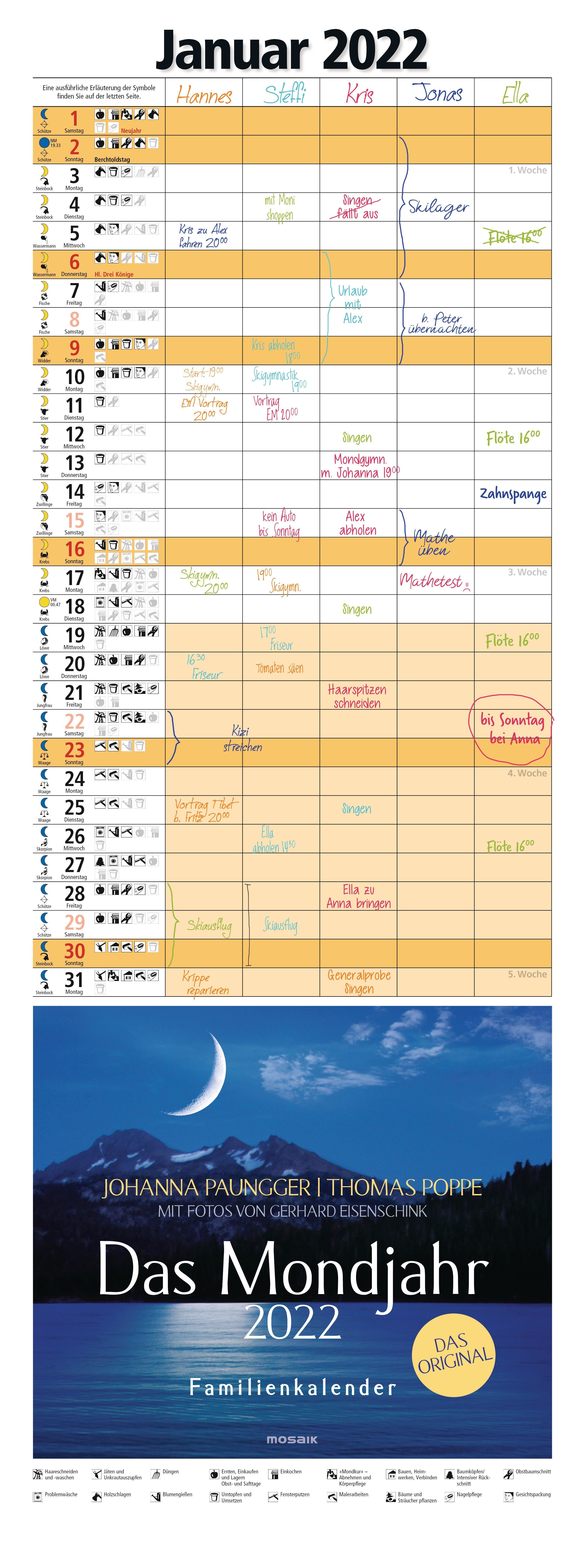 Das Mondjahr 2022 Familienkalender (niemiecki)