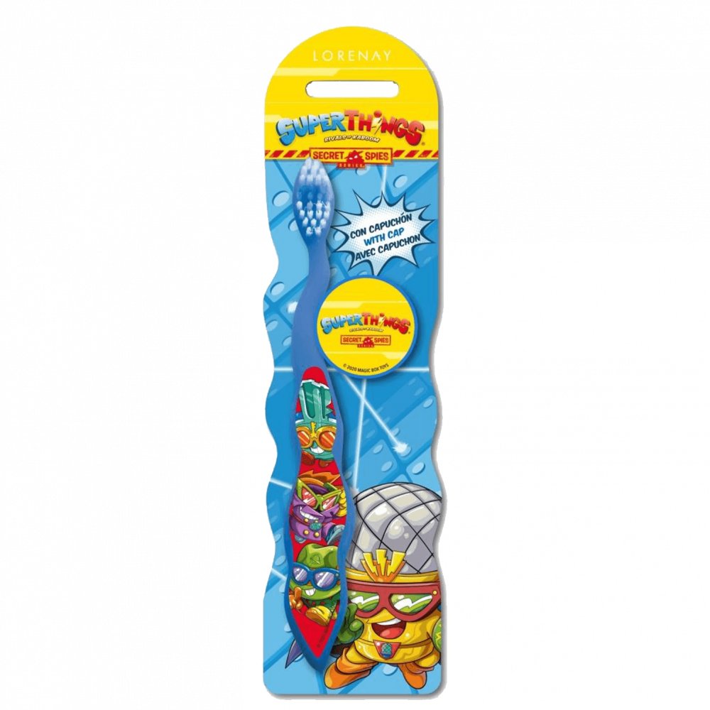 Dětský zubní kartáček s krytem, s motivem SuperThings. Kartáček má jemné kulaté štětinky, které pomáhají vyčistit hůře přístupná místa. S pohodlnou rukojetí pro snadný úchop dětí a figurkami ze Secret Spies bude čištění zoubků zábavou. przeczytaj całość