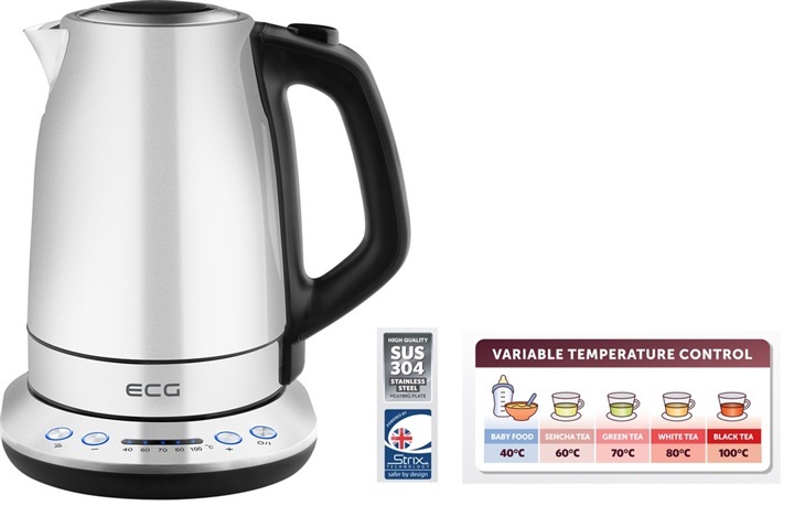 objem 1,7 l, kvalitní nerezové provedení - materiál SUS 304, 360° otočná základna s LED světlem a možností nastavení teploty, funkce udržování teploty, STRIX konektor, ochrana proti přehřátí při zapnutí bez vody, skryté topné těleso, příkon 1850 - 2200 W, przeczytaj całość