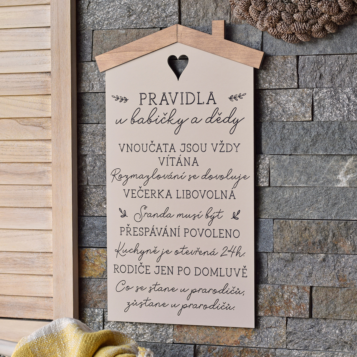 Udělejte své babičce a dědovi radost a vybavte jim domácnost touto milou dekorační cedulí. Pro babičku a dědu, kteří milují své vnoučata a rádi tráví společné chvíle. Velikost cedule: 48 x 29 cm przeczytaj całość