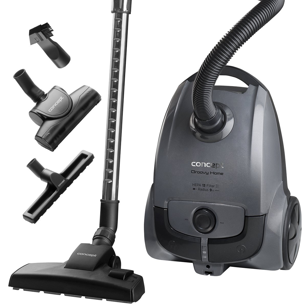 Sáčkový vysavač Groovy Home 700 W Concept VP8338 Široké příslušenství Akční rádius 9 m HEPA filtr 13 EXTRA výkon Sáčkový vysavač Groovy Home VP8338 je osazen vysoce účinným ECO motorem o...