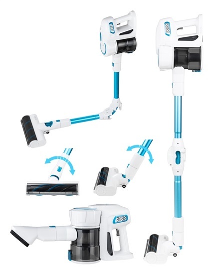 Tyčový bezsáčkový vysavač s odnímatelným ručním vysavačem, motor 150 W, cyklonový motor, 30/15-20 min. provozu, 22,2 V Li-lon 2200 mAh baterie, HEPA filtr H12, 2 výměnné kartáče vhodné na tvrdé podlahy i koberce, flexi ohebná hubice, stírací poduška, prachový kartáč, síla sání 6/10 kPa przeczytaj całość