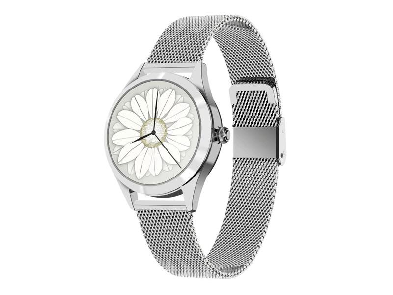 Dámské chytré hodinky, kovové zpracování, dotykový kulatý displej, výběr z množství ciferníků, nastavení vlastní fotografie na ciferník, funkce pro ženy (monitorování menstruačního cyklu), orientační měření tepu, tlaku, sportovní a další funkce, notifikace, kompatibilita Android a iOS przeczytaj całość
