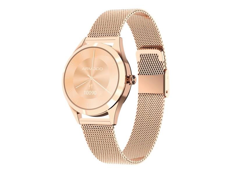 Dámské chytré hodinky, kovové zpracování, dotykový kulatý displej, výběr z množství ciferníků, nastavení vlastní fotografie na ciferník, funkce pro ženy (monitorování menstruačního cyklu), orientační měření tepu, tlaku, sportovní a další funkce, notifikace, kompatibilita Android a iOS przeczytaj całość