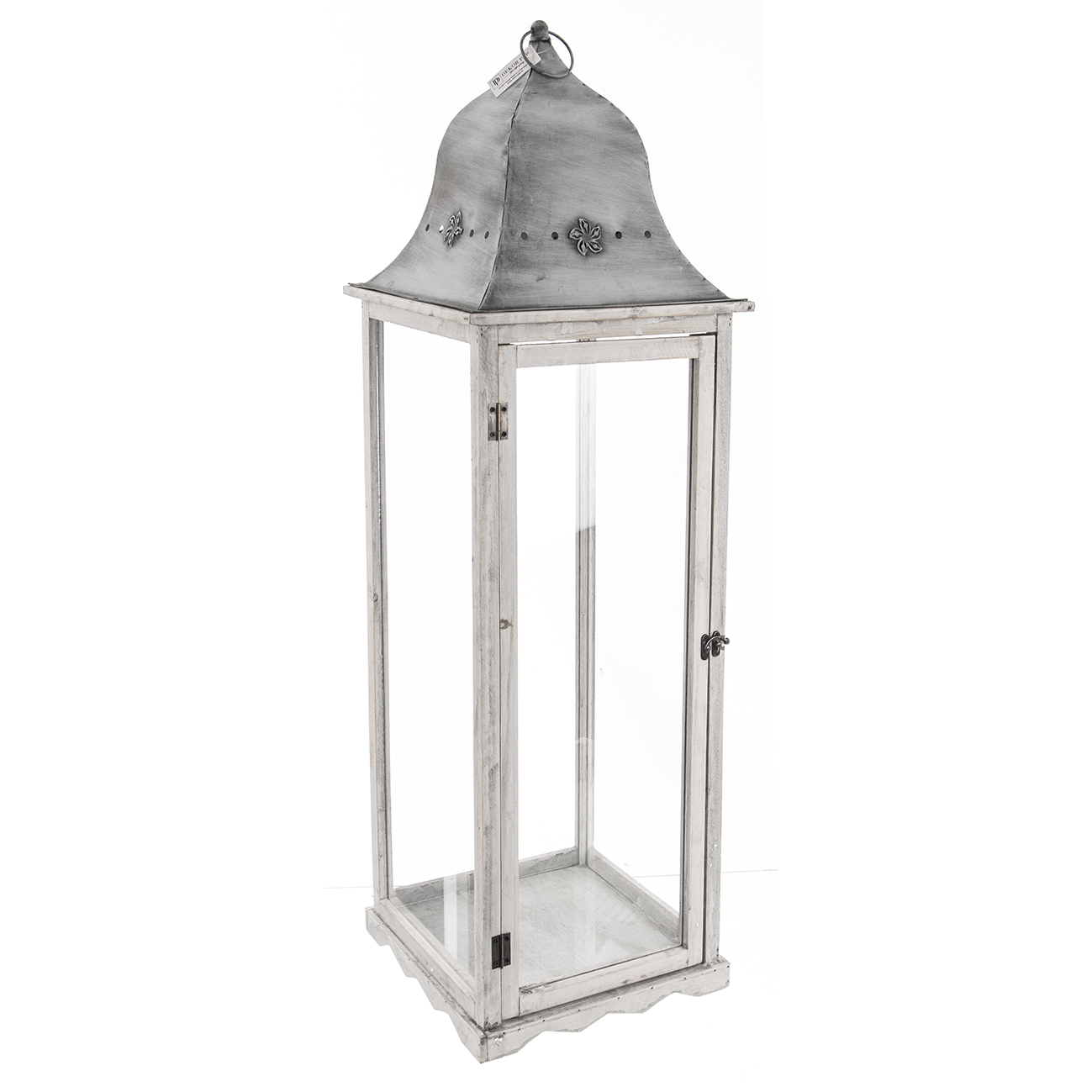 Lucerna dřevo/kov bílá velká 32x32x101 cm