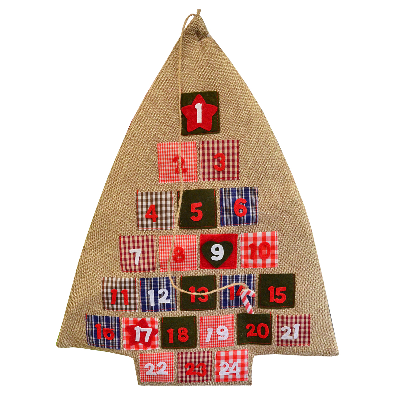 Kalendář adventní juta strom 55 cm