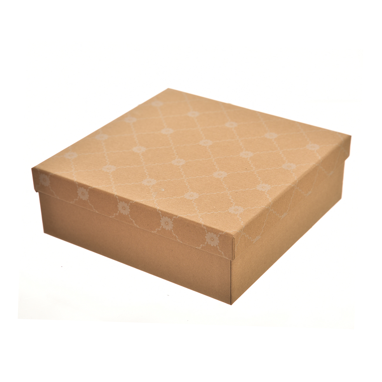 Krabice dárková papír vzor hnědá 20x20x8 cm