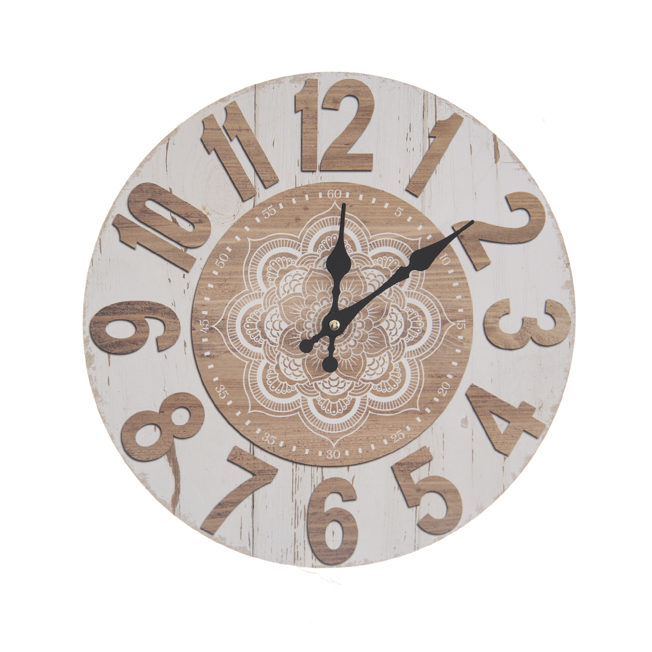 Hodiny nástěnné dřevo mandala béžové pr. 34 cm