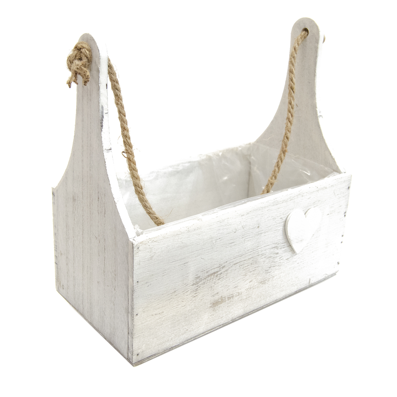 Bedýnka dřevo bílá se srdíčkem 27x15x34 cm