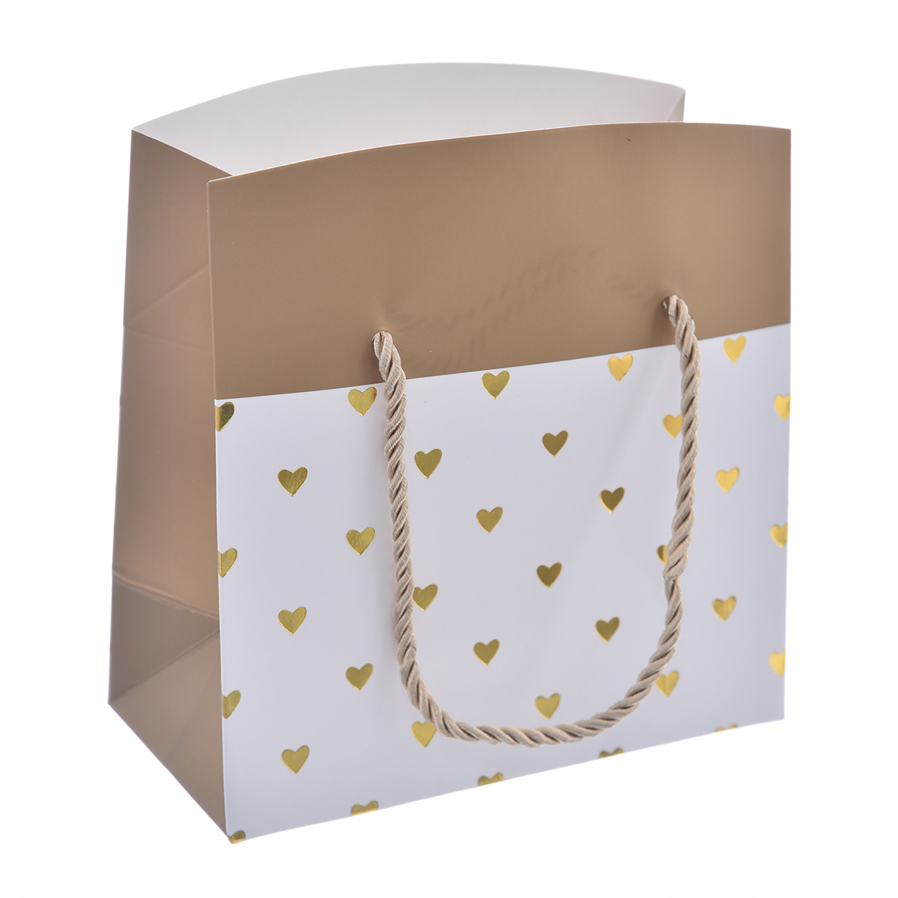 Taška dárková srdce uzavíratelná zlatá 27x13x20 cm