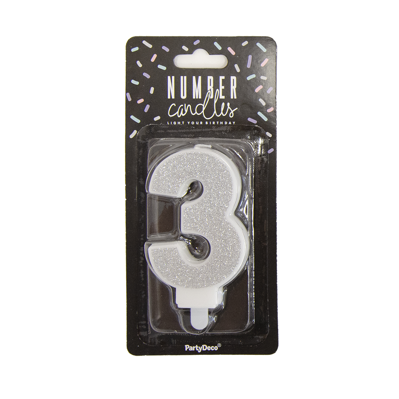Svíčka dortová číslo 3 stříbrná 7 cm