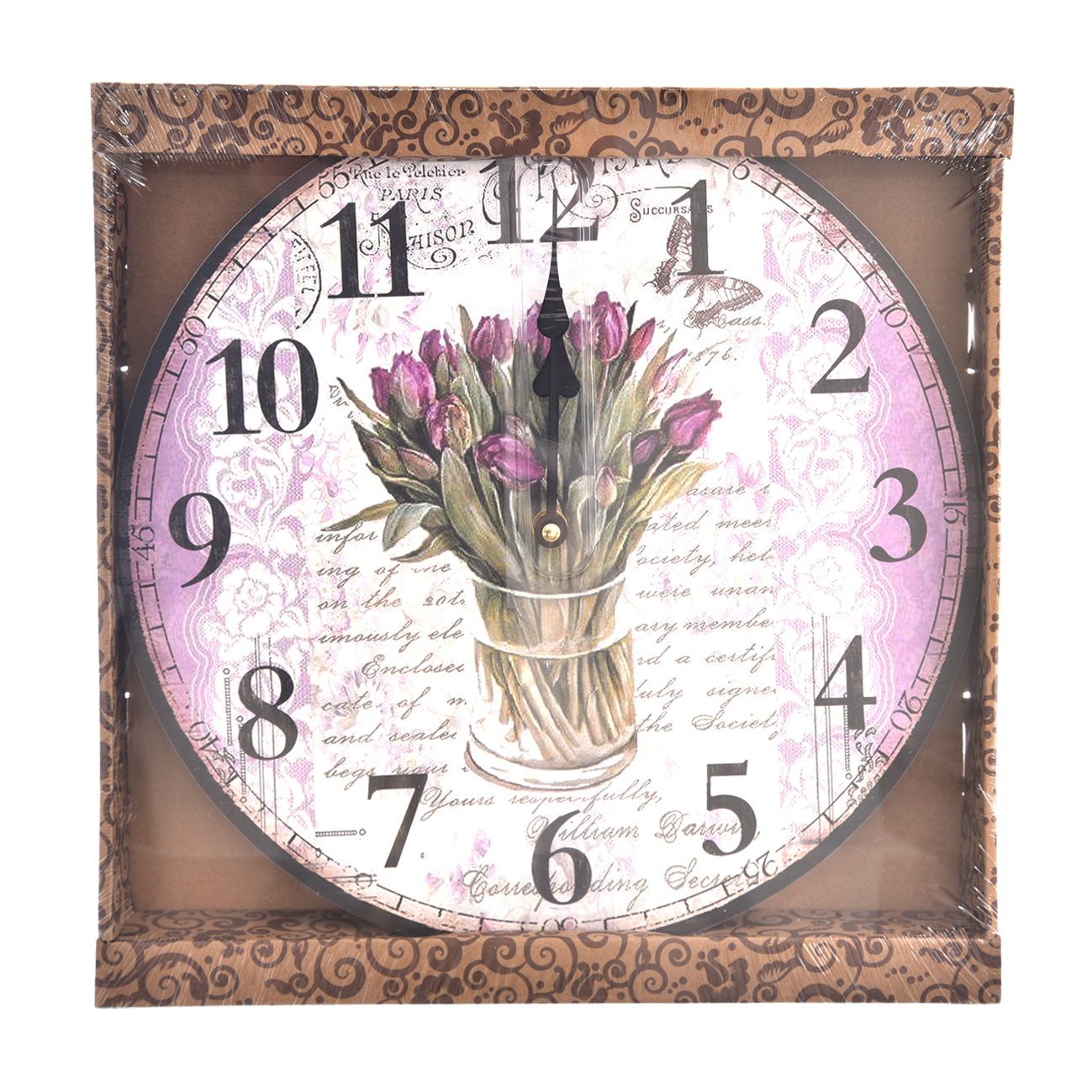 Hodiny nástěnné dřevo tulipány pr. 34 cm
