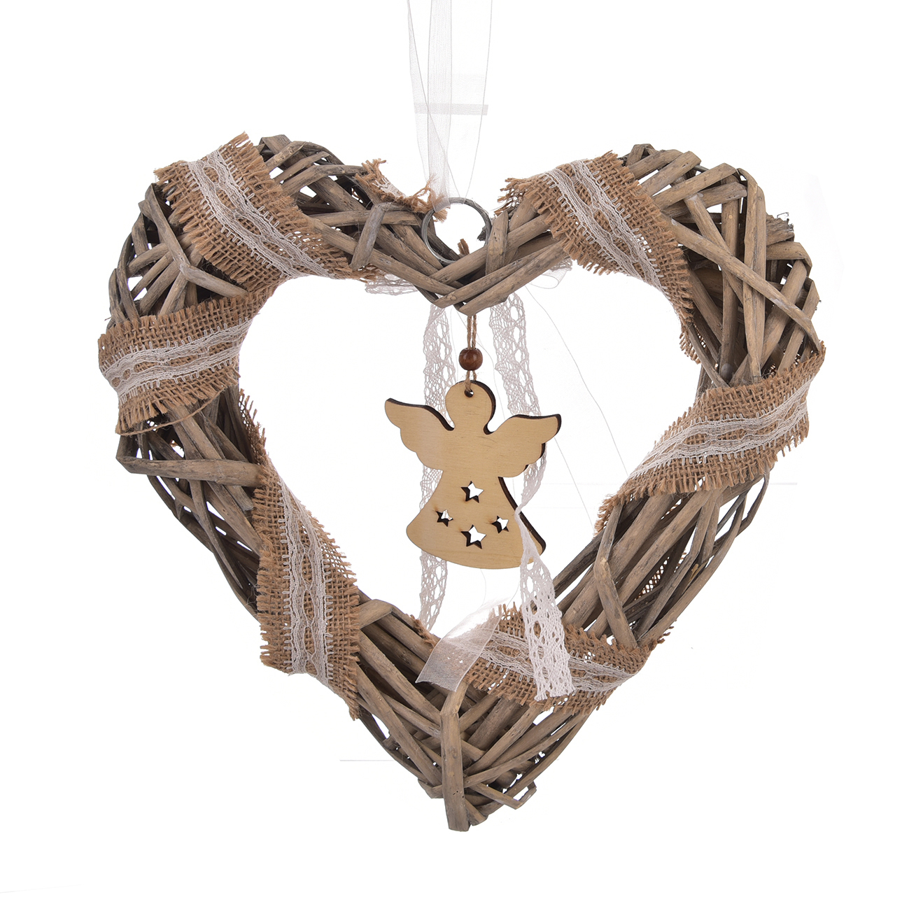 Srdce proutí anděl závěsné hnědé 30x30 cm