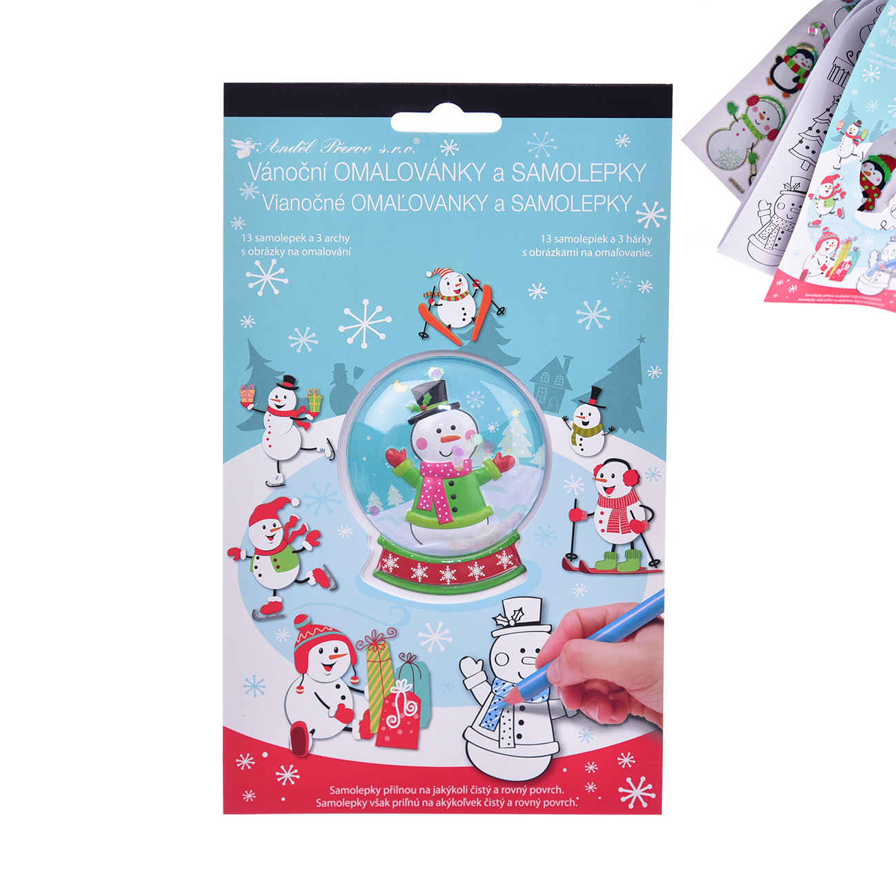 Omalovánky/samolepky sněhulák vánoční 14x23 cm