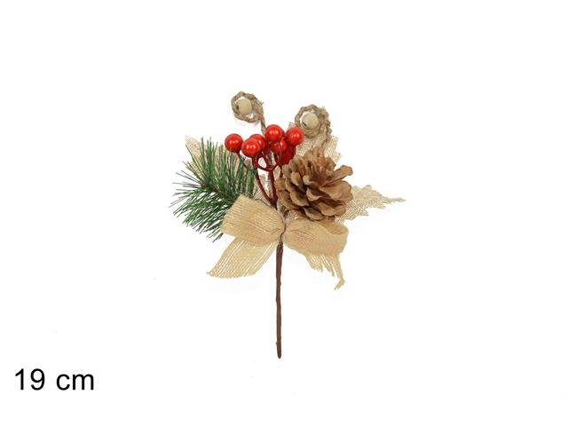 Přízdoba UH větvička jeřabiny/šišky 19 cm