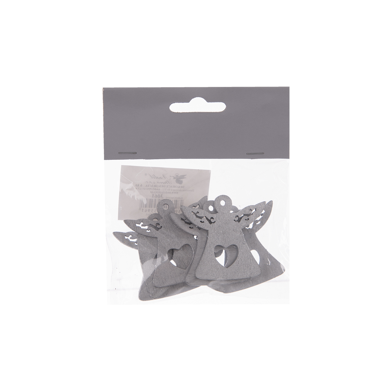 Přízdoba dřevo anděl barva stříbrná 6 ks 5 cm
