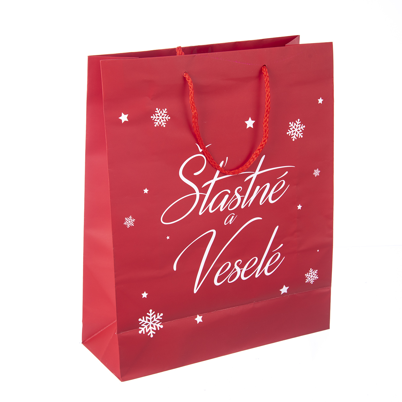 Taška dárková červená Šťastné a Veselé 26x10x32 cm
