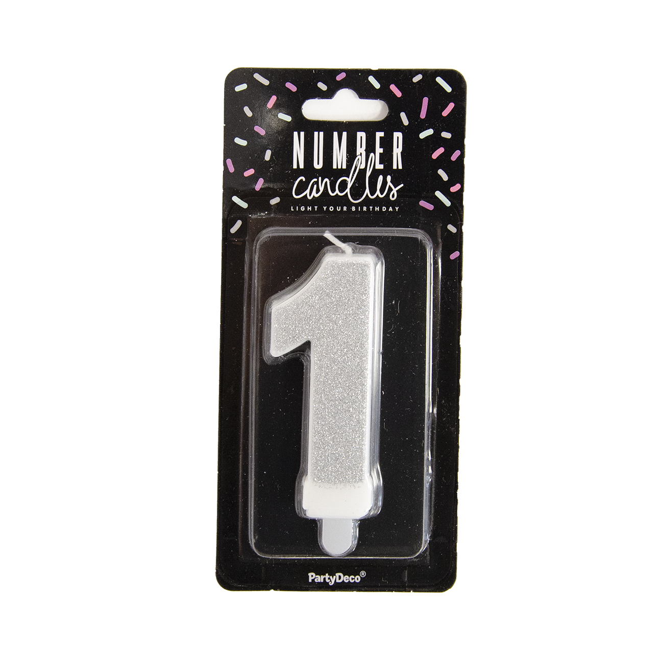 Svíčka dortová číslo 1 stříbrná 7 cm