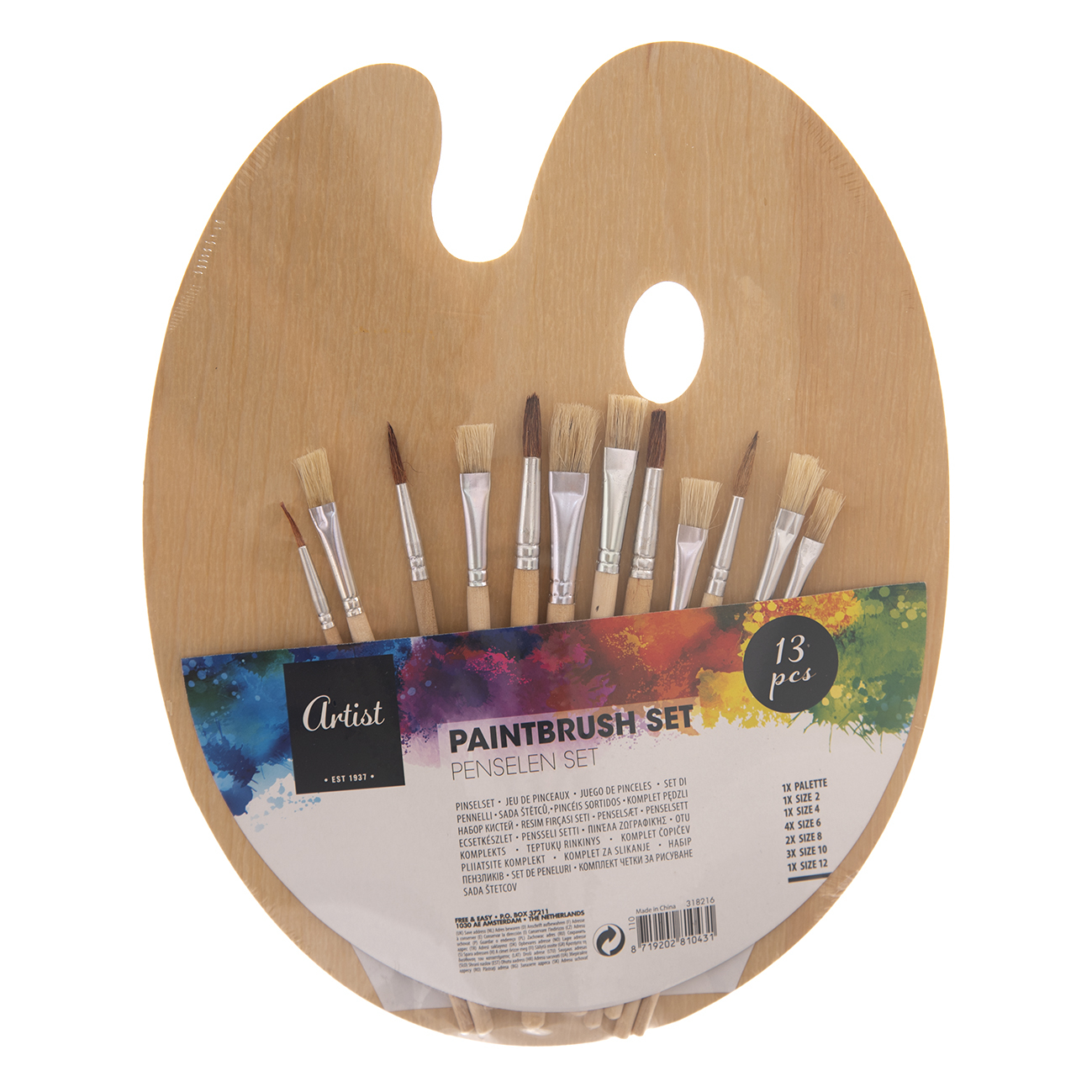 Paleta dřevo+štětce malířské sada 12 ks 25x31 cm