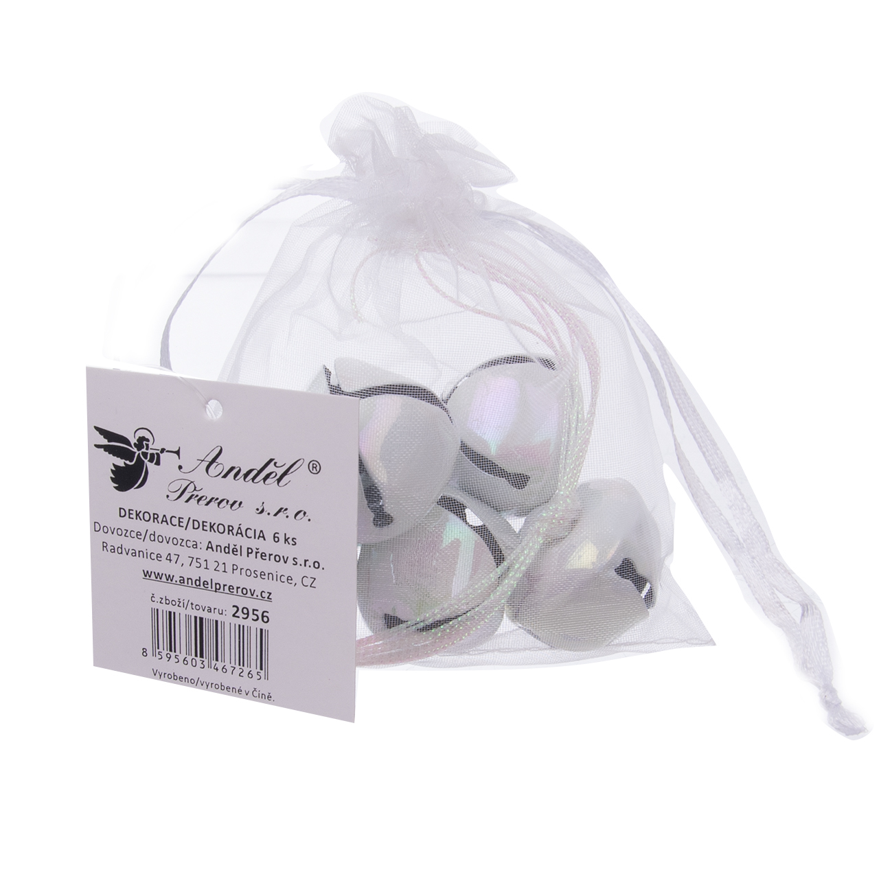 Rolnička kov perleť bílá organza 6 ks pr. 3 cm