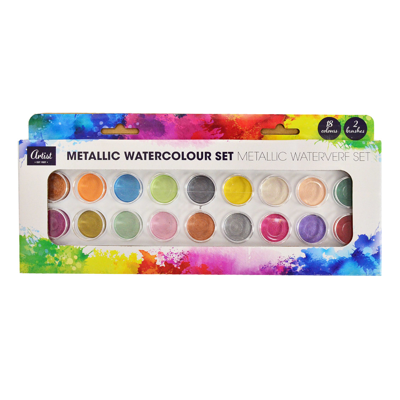 Vodové barvy metalik 18 ks 28x2x13 cm