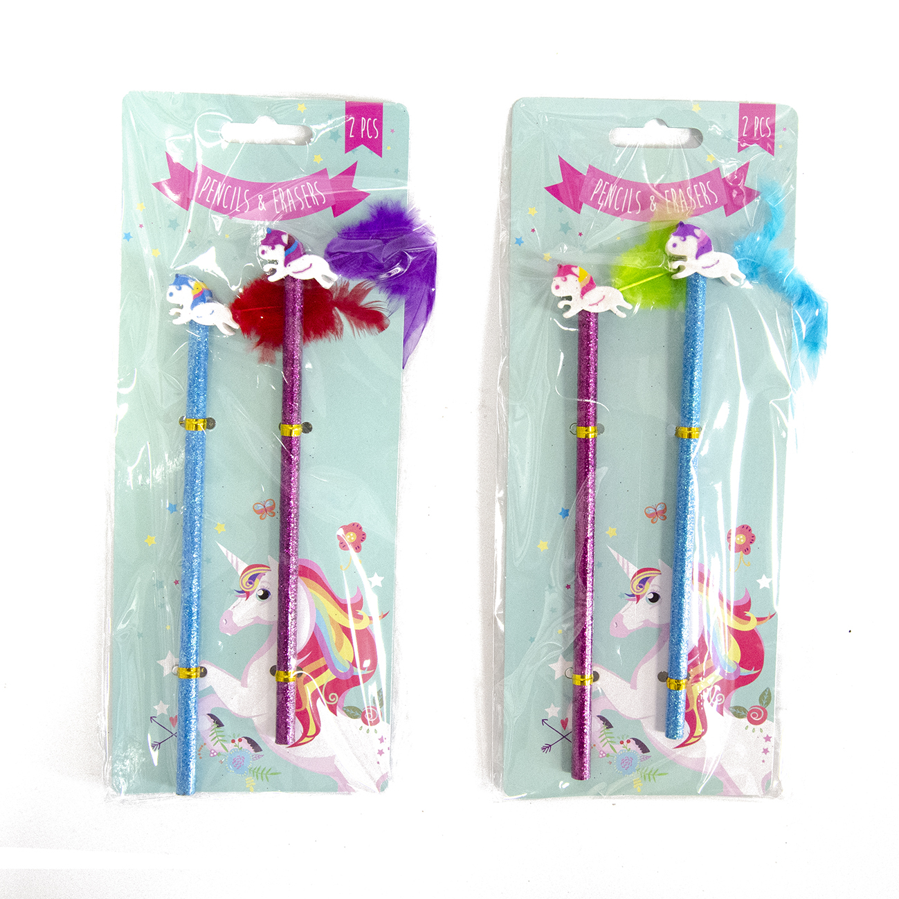 Tužka peříčka s gumou jednorožec 2 ks