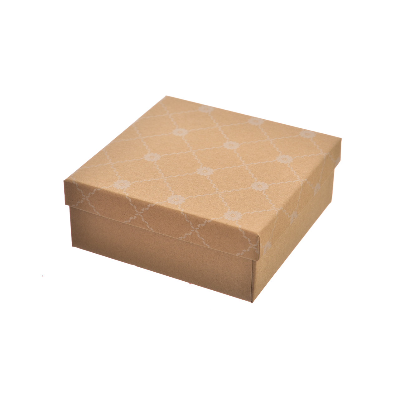 Krabice dárková papír vzor hnědá 14x14x6 cm