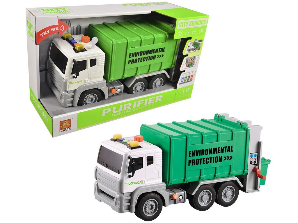 Auto popelářské, na setrvačník, funkce pumpy zvedá kontejner, světlo, zvuk, 30 x 10 x 14 cm