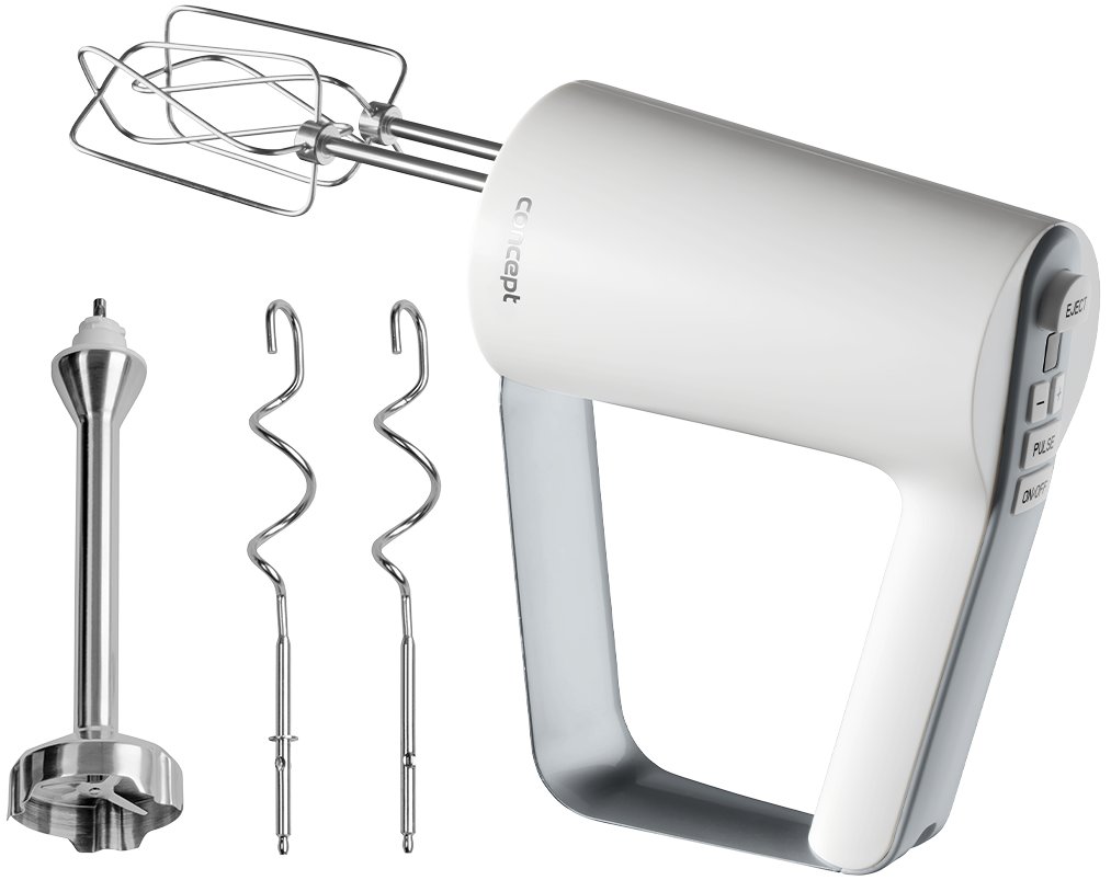 Ruční šlehač s tyčovým nástavcem 500 W Concept SR3300 Vyměnitelné nerezové nástavce 5 rychlostí + PULSE Snadná obsluha Vždy při ruce Ruční šlehač SR3300 s příkonem 500 W vám usnadní spousty...
