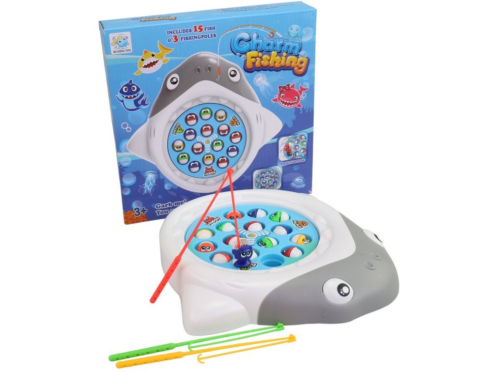 Rybičky, žralok, na baterie. Rybolov ve tvaru žraloka je velice oblíbenou hrou. Tato hra je určena až pro 3 hráče. Po spuštění hry, se v hracím poli začnou točit rybky a jejich pusy se postupně otevírají. Úkolem hry je ulovit co nejvíce rybiček. Vyhrává ten, který nachytal největčí počet ryb.