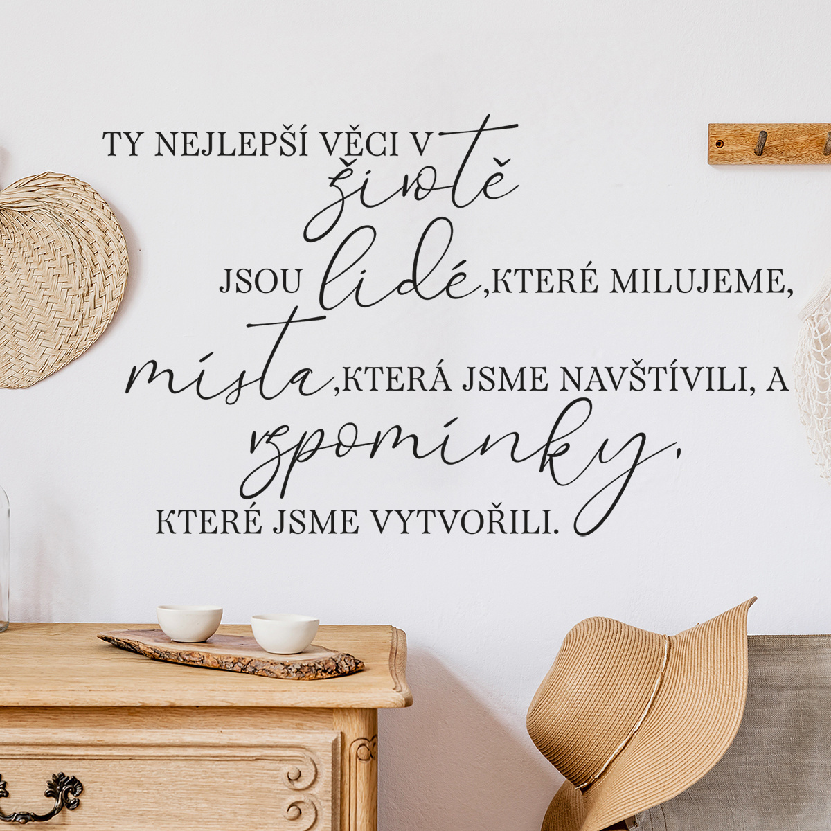 Samolepka v moderním duchu s kaligrafickým (ručně psaným) písmem a báječným citátem, který vystihuje vše. Tento citát jsme si skutečně oblíbili, protože je tak pravdivý a ukazuje na to, co je v životě opravdu důležité.