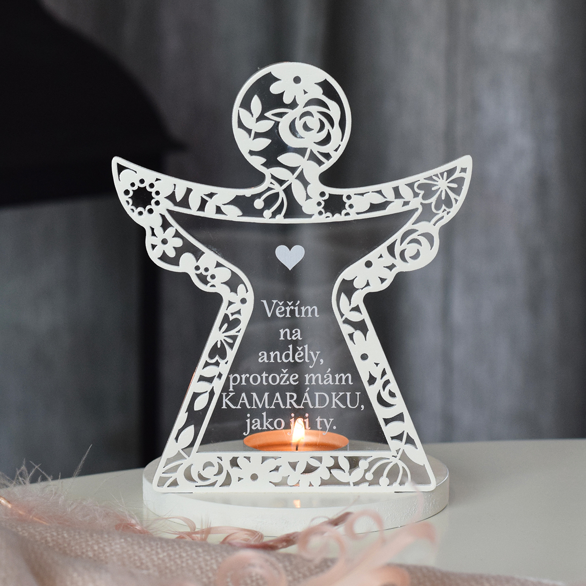 Svícen vyřezávaný anděl - Kamarádka