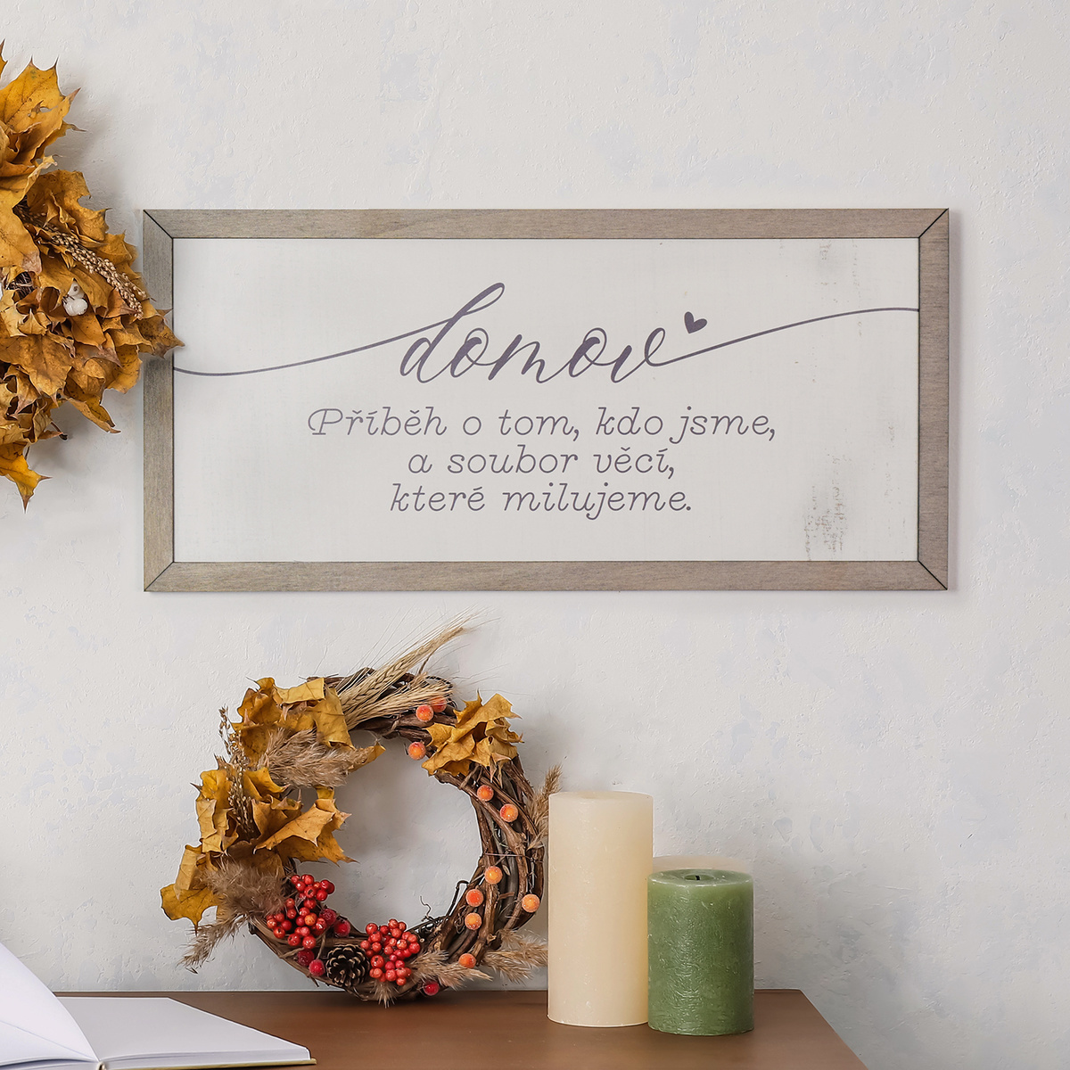 Dřevěná cedulka s rámem - Domov je příběh